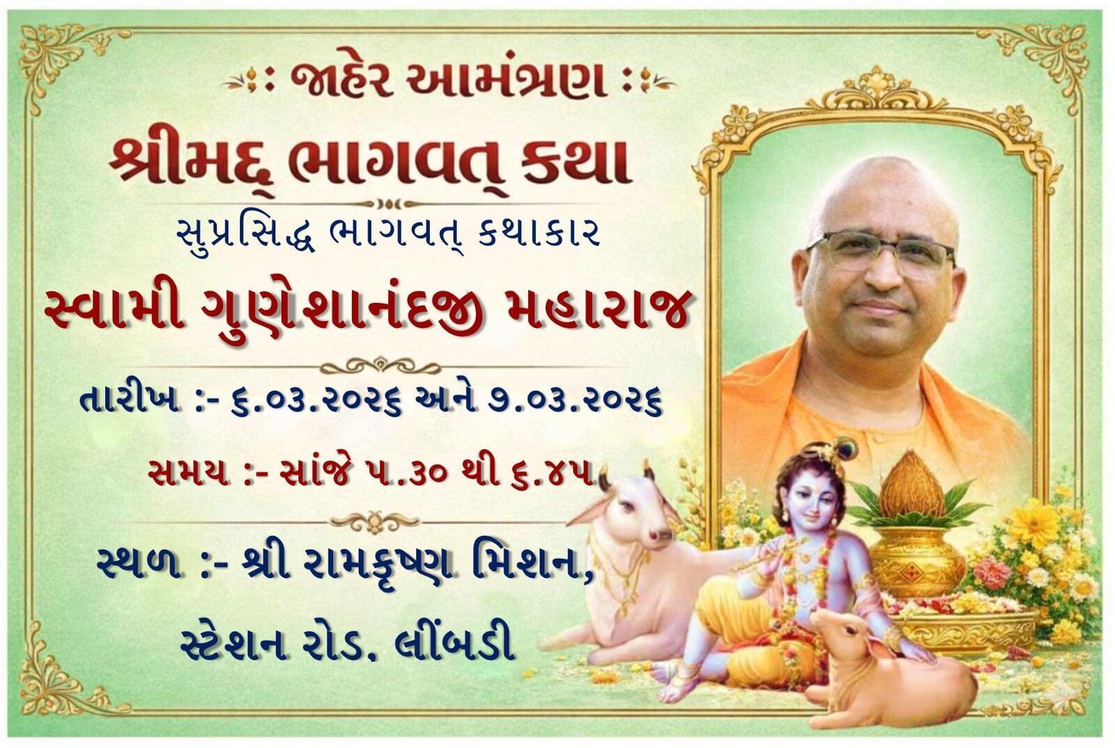 In the year 1968 a group of local devotees divinely inspired by Shri Ramakrishna, - founded Shri Ramakrishna Prarthana Mandir and in 1994 it was handed over to Ramakrishna Mission, Belur Math along with the present location of the Ashrama. Since then the Ramakrishna Mission, Limbdi is continuing the socio-religious activities according to the teachings of the holy Trio.